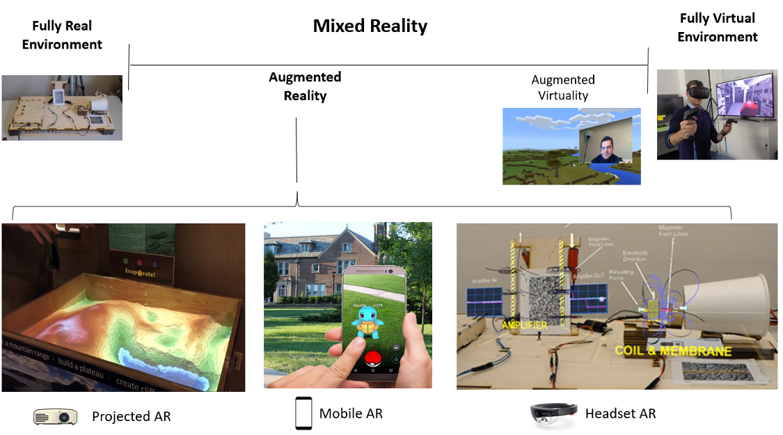 Figure 1. The reality-virtuality continuum, with examples of augmented reality technologies. *